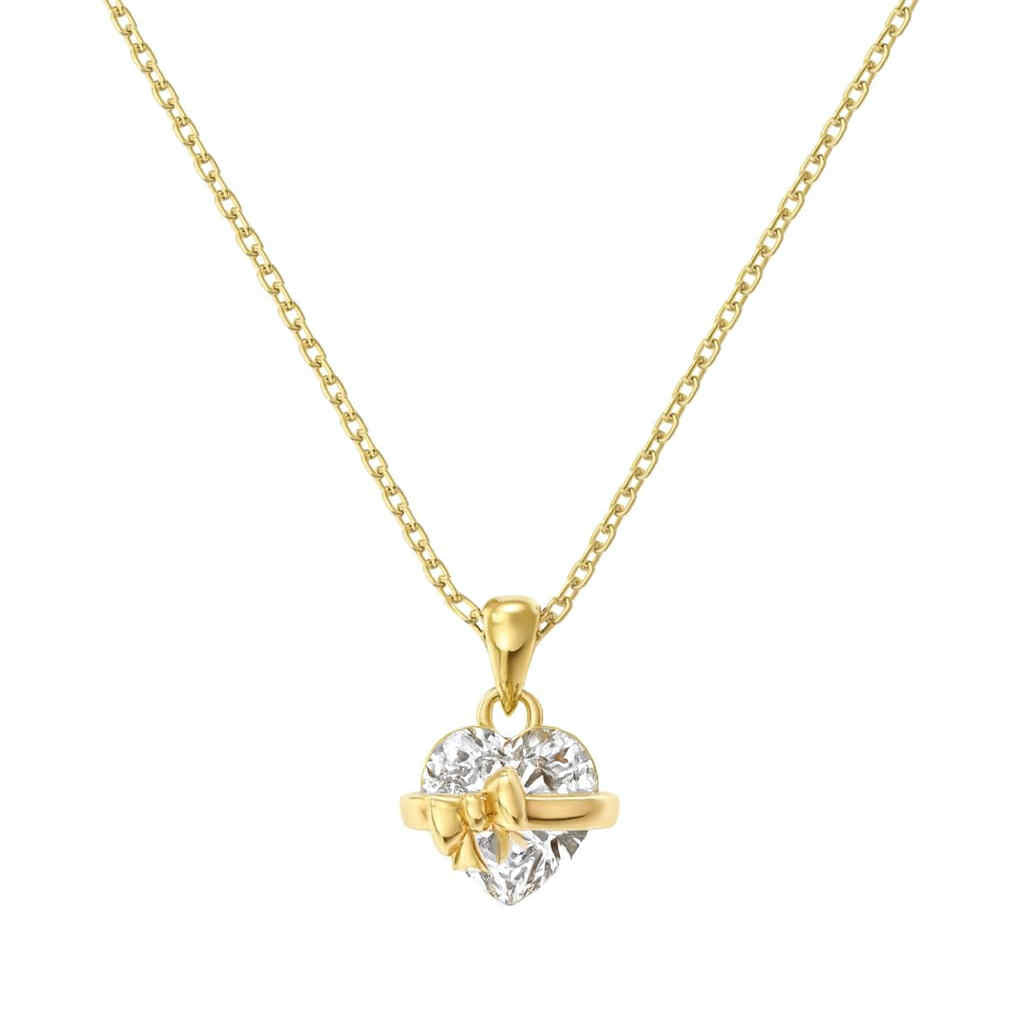 The Princess Heart Bow Pendant is crafted from 925 sterling silver and finished with a sparkling heart-cut cubic zirconia stone.